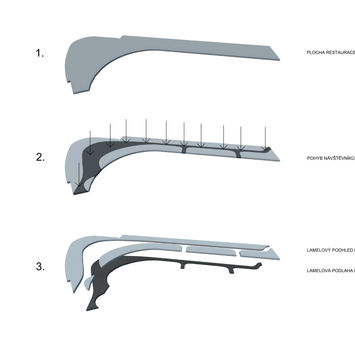 Do nového pavilonu restaurace hotelu Aquapalace Praha v Čestlicích navrhujeme interiér pro potřeby rozšíření spektra gastronomické nabídky – restauraci Terresa s provozem à la carte. Zároveň nabízí víceúčelový pronajímatelný salonek. Návrh interiéru vychází zejména z daného specifického tvaru pavilonu (zastřešení stávající terasy). Koncept řešení vymezuje plochy klidové a plochy pohybu. Pohyb je na podlaze zvýrazněn pomocí textury z pruhů. Na stropě se princip otáčí, pruhy vymezují prostory klidu – jsou vytvořeny z jasanových lamel. Lamely zároveň slouží pro rozptyl světla a pro vedení průsvitných závěsů. Závěsy mohou jemným způsobem nadělit prostor na soukromé kóje. Uprostřed centrální plochy je umístěn velkorysý kruhový lustr. Místo pod ním bude využíváno jako café, místo kuchyňských show či jiných prezentací. Materiálový koncept obnáší pouze jasanové dřevo, antracitové a bílé povrchy v různých materiálových provedeních (lak, kůže, mramor…).